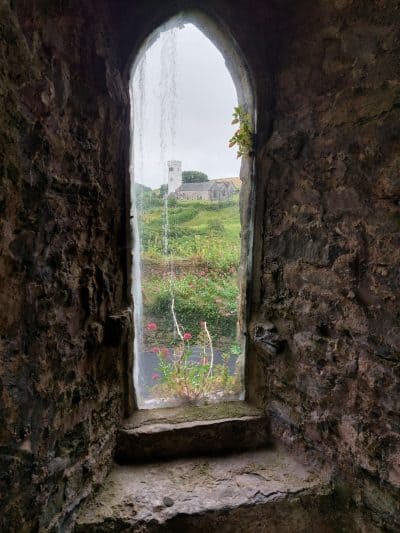 Das Castle ist umgeben von sanften grünen Hügeln, saftigen Wiesen und der Strand verbunden mit dem Meer ist nicht weit. Sogar eine niedliche Kirche ist in der Nähe. Hier ist so idyllisch, dass es sich wie in einem verwunschenem Märchen anfühlt.