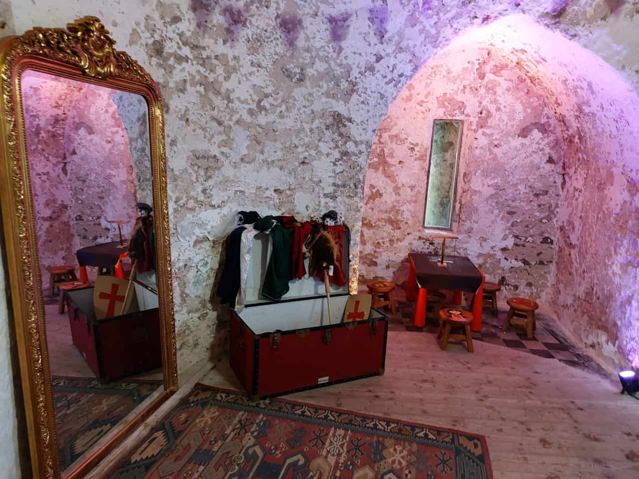 Dann gibt es auch Räume, die liebevoll eingerichtet sind. Besonders gefallen haben mir der Raum mit mittelalterlichen Spielen und Utensilien zum Verkleiden oder auch das Verlies mit der Legende von Captain Jolly Jack Furze. Das Castle steckt voller Geschichten, manche werden auf Täfelchen an der Wand erzählt. Es ist auf jeden Fall auch für Kinder eine wahre Freude.