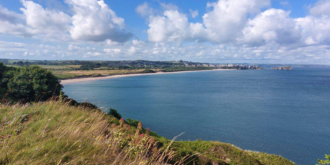Am späten Nachmittag ging ich vom South Beach in Tenby weiter hoch zur Straße Richtung Manorbier vorbei an dem schönen Garten des Atlantic Hotels. In der Nähe des Weges befindet sich ein Golfplatz. Wenn du dort entlang läufst, befindest dich fast wieder auf dem eigentlichen Weg.