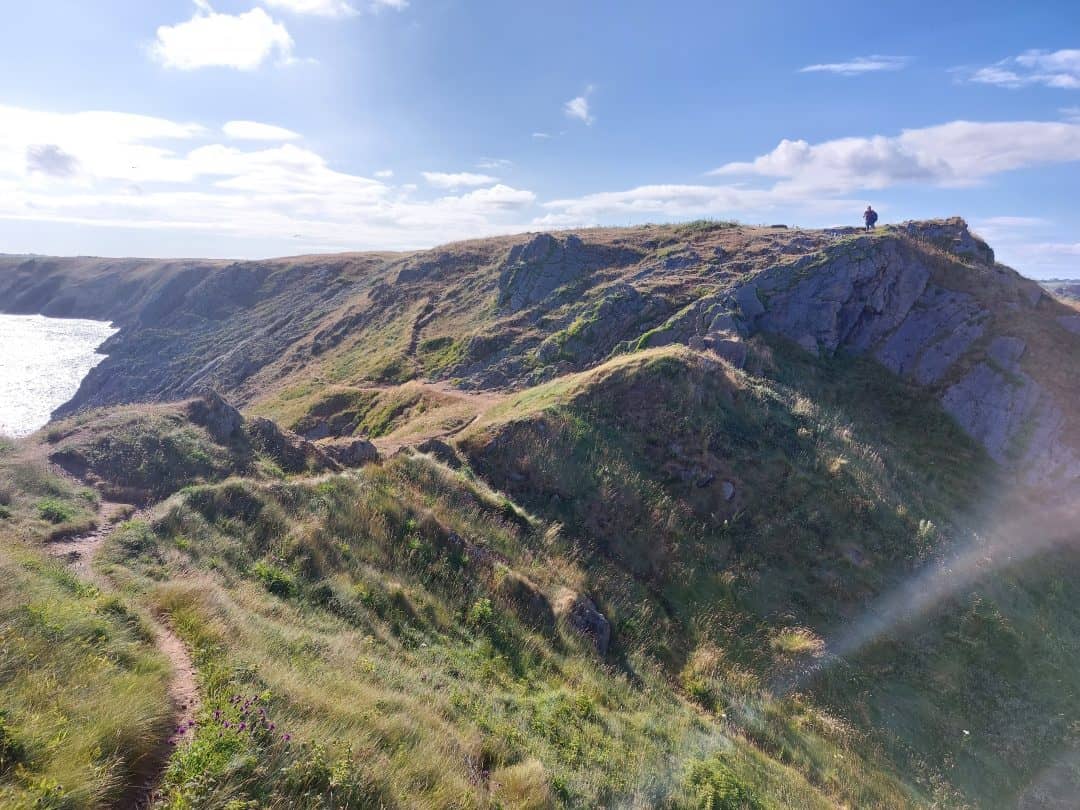 Nach nur wenigen Kilometern triffst du endlich auf die Atlantikküste und läufst endlich den Weg, der den Pembrokeshire Coast Path ausmacht. Tosende Wellen knallen an die Klippen, du kannst das Salz schmecken, das Meer erstreckt sich in voller Länge vor dir und du bist umgeben von grünen Wiesen während du stets dem kleinen Trampelpfad, nahe der Klippen folgst.