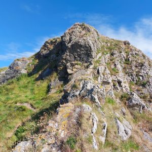 Das Gefühl verschwand ganz schnell, als sich ein riesiger Fels vor mir auftat und meine Uhr und mein Handy sagten, dass ich dort hoch musste. Auch zwei weitere Wanderer machten sich bereits daran, den Berg hochzukraxeln.
