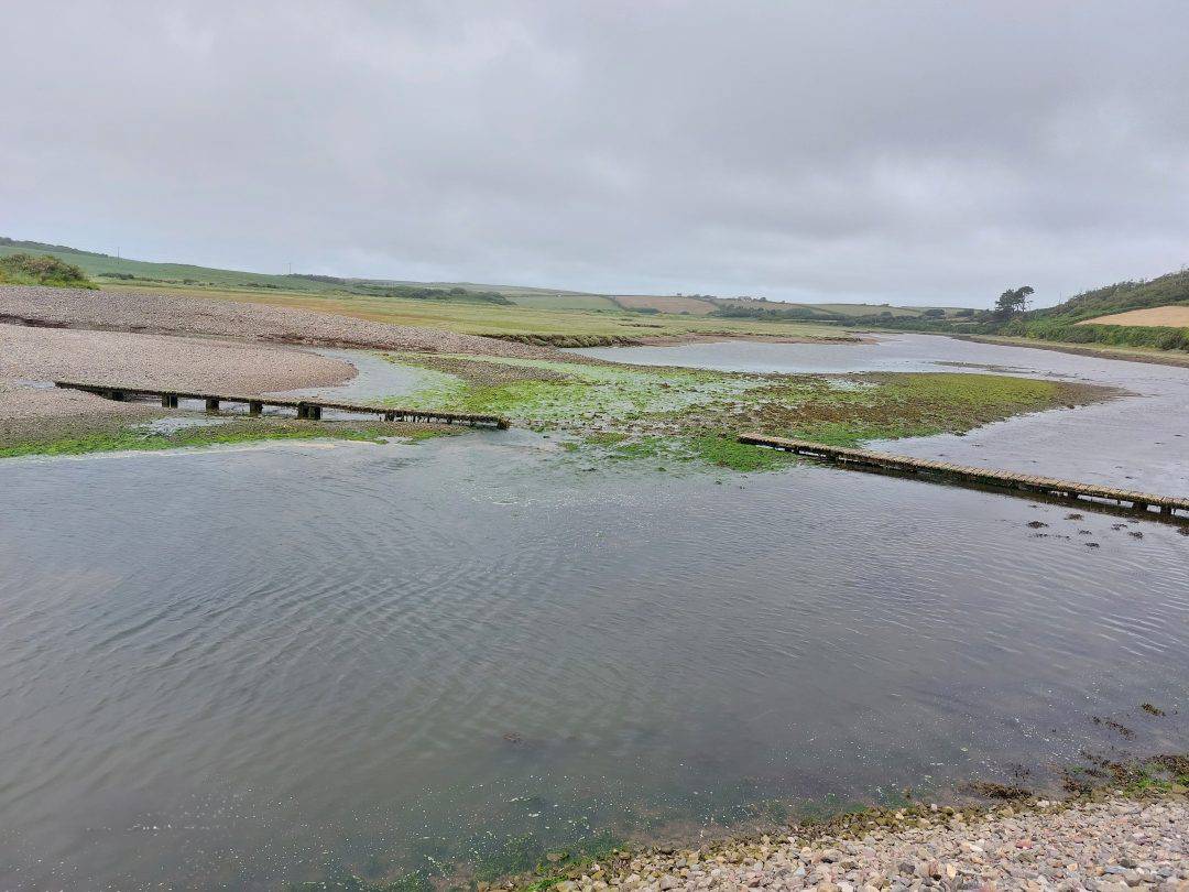 Ich habe das alles nicht so genau genommen und musste mit Ernüchterung feststellen, dass selbst bei der Midtide, also die Zwischenzeit zwischen Ebbe und Flut, es absolut unmöglich war, den Fluss zu überqueren. Es sei denn, du gehst mit deinem Zeug schwimmen…