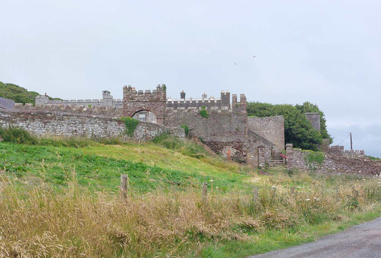 Für den kürzeren Weg biegst du entweder gleich bei dem Beach Car Park in den Castle Way oder du bist bereits weiter gelaufen. Dann befindest dich in der Nähe des berühmten Restaurants The Griffin. Von dort aus gelangst du über den Meadow Vale in den Castle Way und folgst dem Weg zum Dale Castle. Dort wirst du vermutlich auf einige grasende Kühe treffen.
