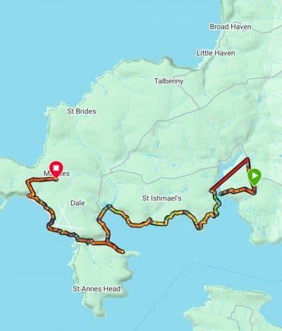 Die wunderschöne Küste kannst du kilometerweit beim Wandern genießen. Von dort aus sind es nur noch wenige Kilometer zu dem heutigen Ziel, dem Dorf Marloes.