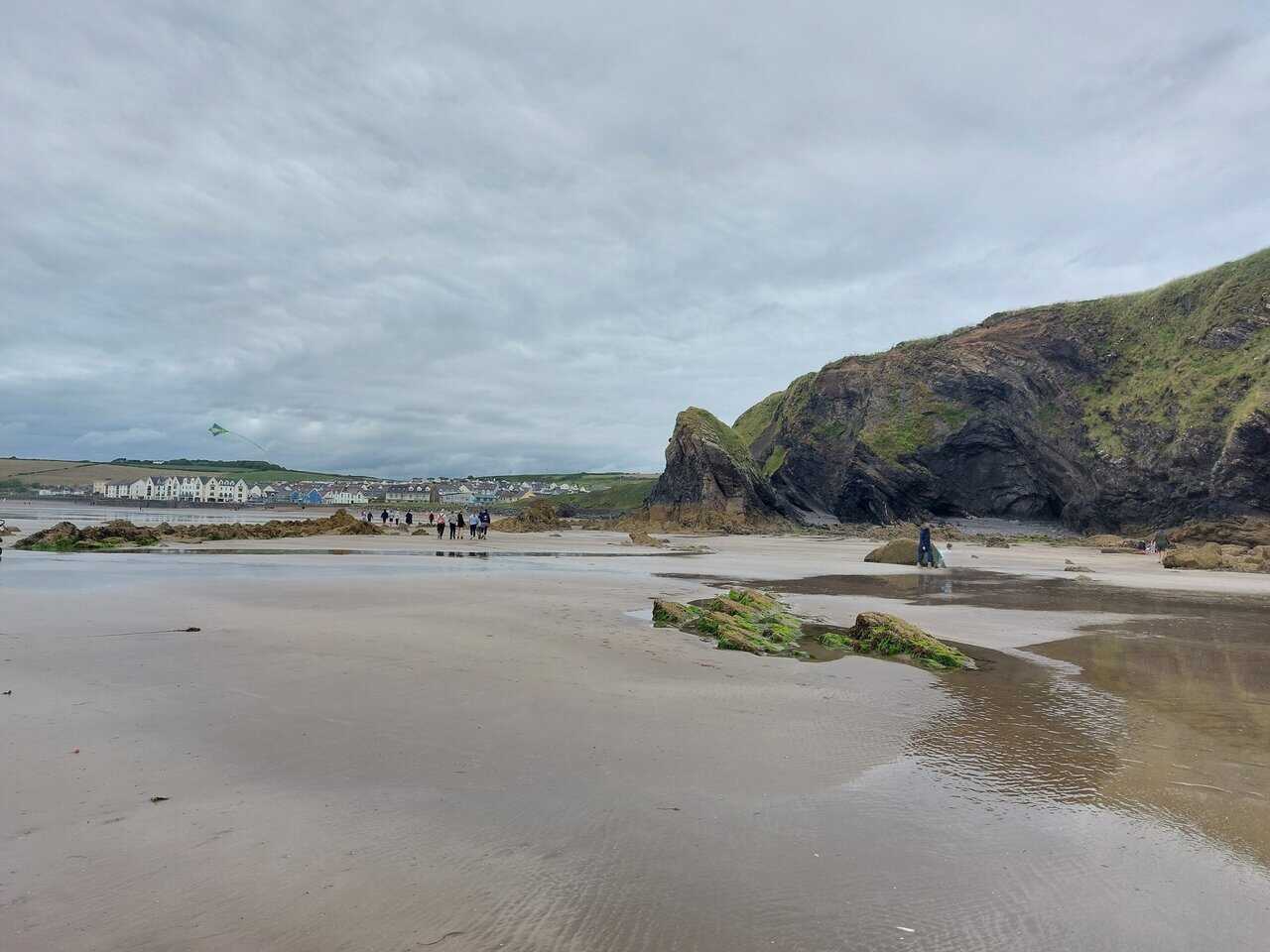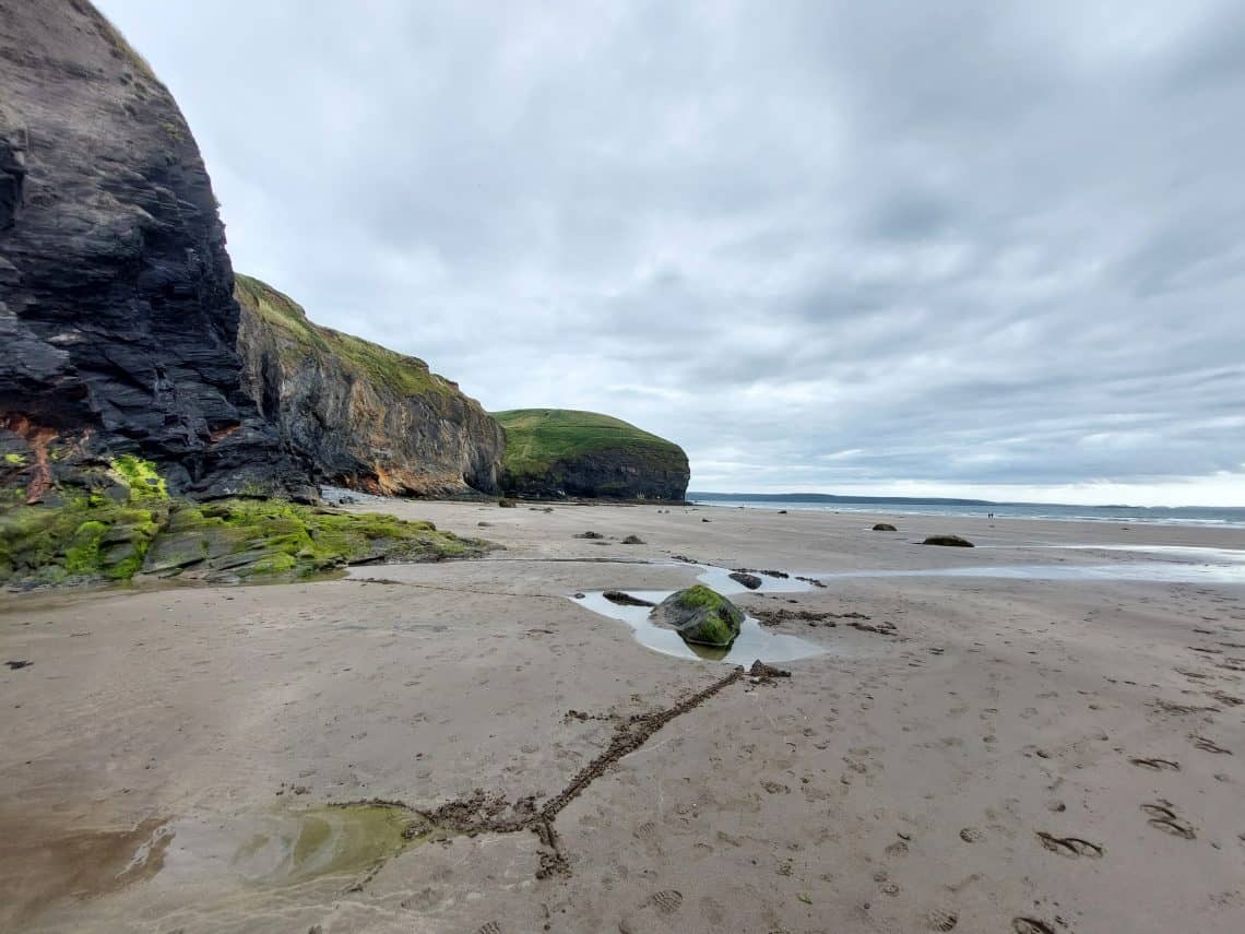 Nach ungefähr einem weiteren Kilometer traf ich auf den Druidston Beach und genoss zum letzten Mal für diese Reise einen wunderschönen Sandstrand mit Blick auf den Atlantik. Das Gestein und die Nässe im Sand mit dem wolkigen Himmel verliehen meinem Abschied einen magischen Abschluss.